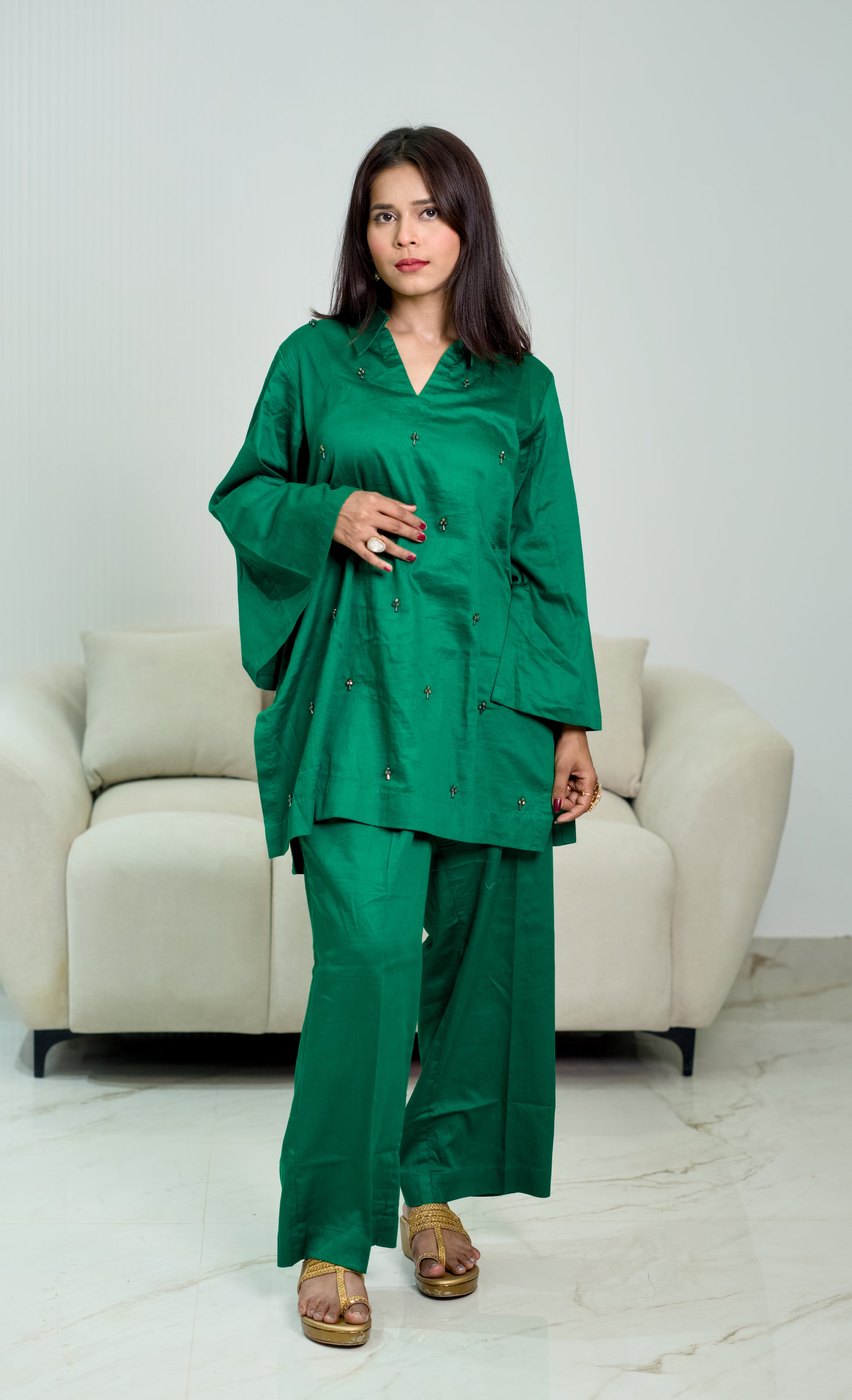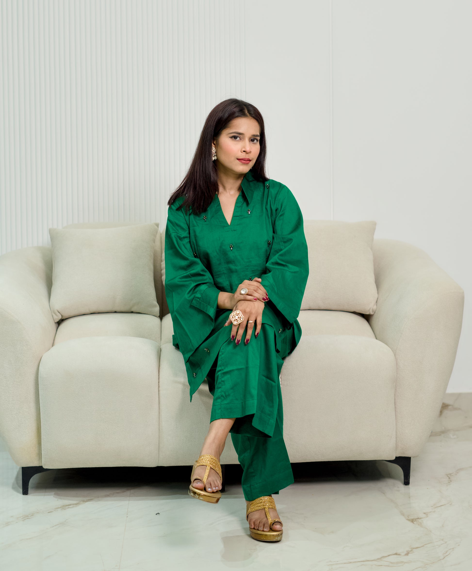 Experience refined elegance with our Deep Emerald Cord outfit, crafted to bring sophistication and comfort together. Made from premium Russian cotton, this ensemble offers a soft, breathable feel perfect for everyday wear or semi-formal occasions.